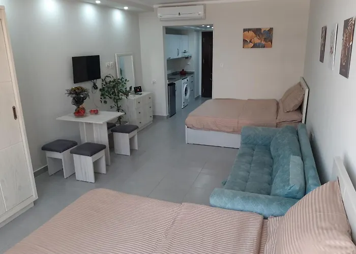 Апартаменты обладают оснащённой всем необходимым кухней, микроволновой печью, электрочайником и холодильником. Ресторан Caleo Restaurant находится всего в 14 минутах ходьбы и балует гостей блюдами египетской кухни. Scandic Resort, Free Wifi, Sandy Beach, Coral Reef разместились на расстоянии 10 минут ходьбы от автобусной станции Go. В апартаментах к вашим услугам веранда для загара и солнечная терраса.